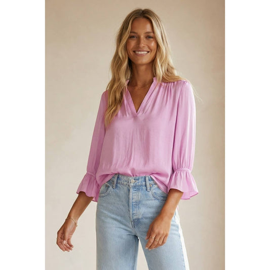 Sequin Long Balloon Sleeve Crinkle Chiffon Blouse