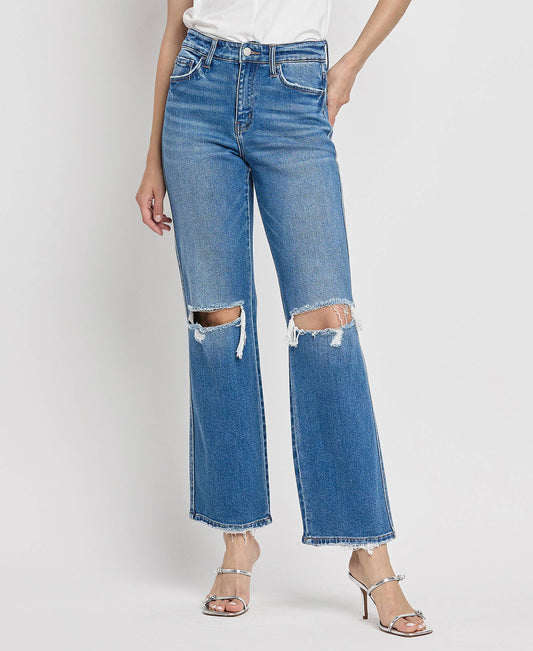 High Rise Medium Wash Full-Length Wide Leg Jeans