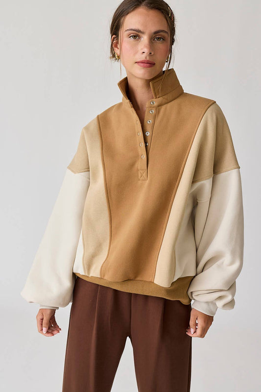 Emma Regular Length Oversized Washed Colorblock Sweater