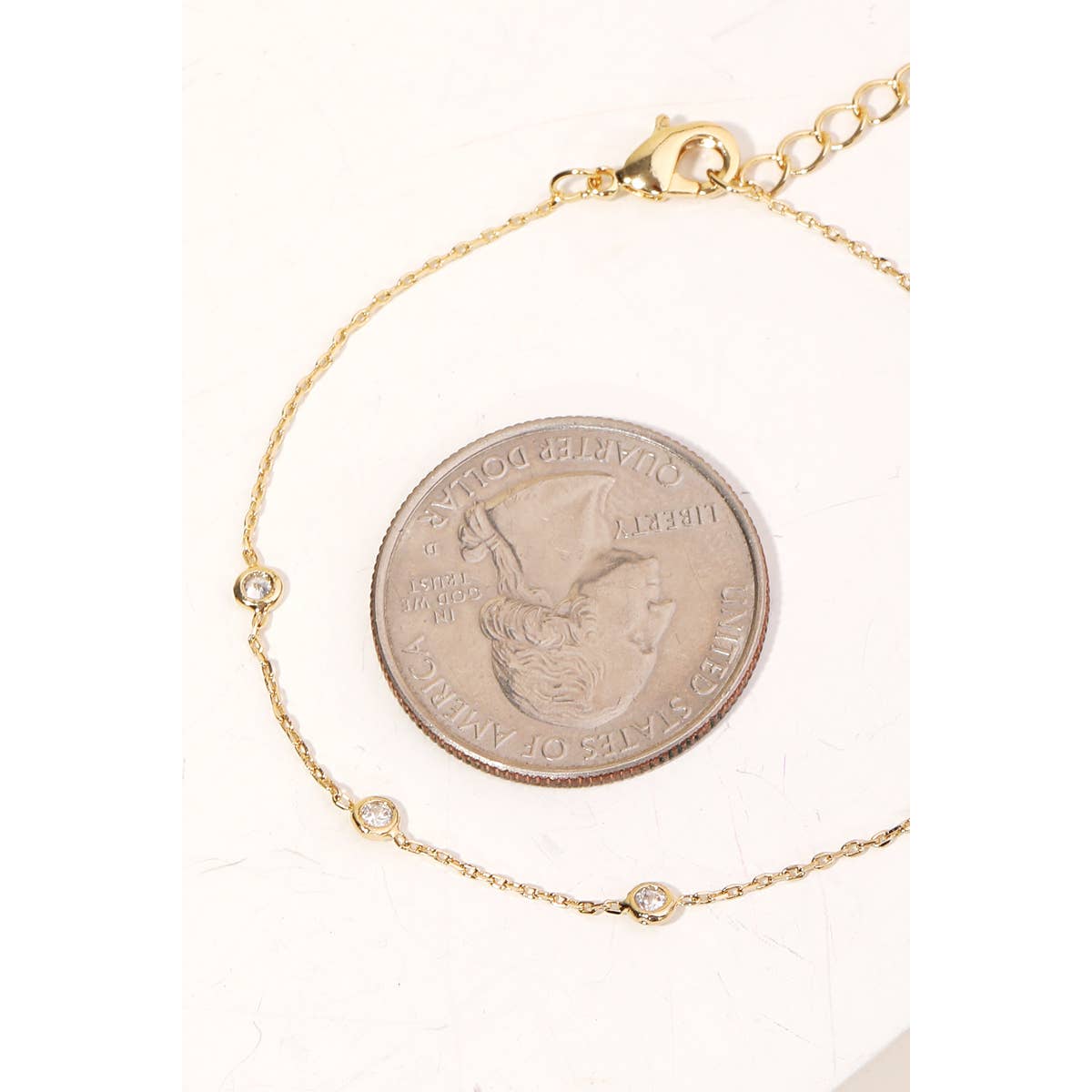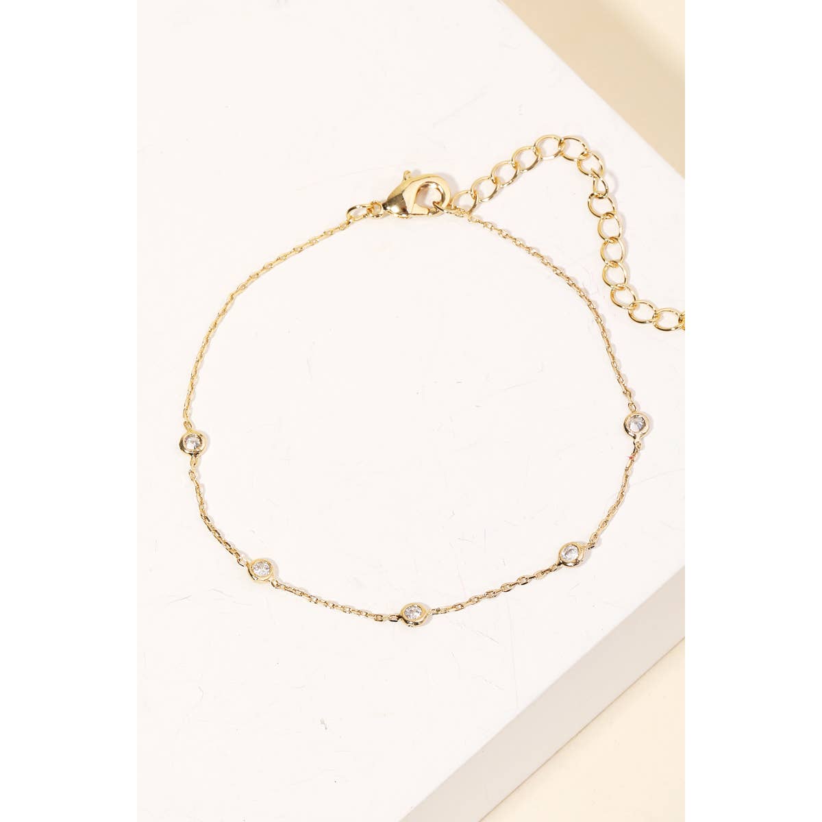 A must-have addition to any accessory collection, this bracelet boasts a magnificent dainty chain rhinestone charm design. This item is perfect for anyone who loves to accessorize and add some personality to their outfits. Available in Gold.