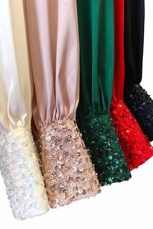 Sophisticated, luxe, and effortlessly elegant — this Sequin Cuff Satin Blouse Top brings a touch of shimmer to every occasion. Designed with a smooth satin finish and sparkling sequin-embellished cuffs, it’s the perfect statement piece for holiday events, office parties, date nights, or any moment that calls for elevated style.