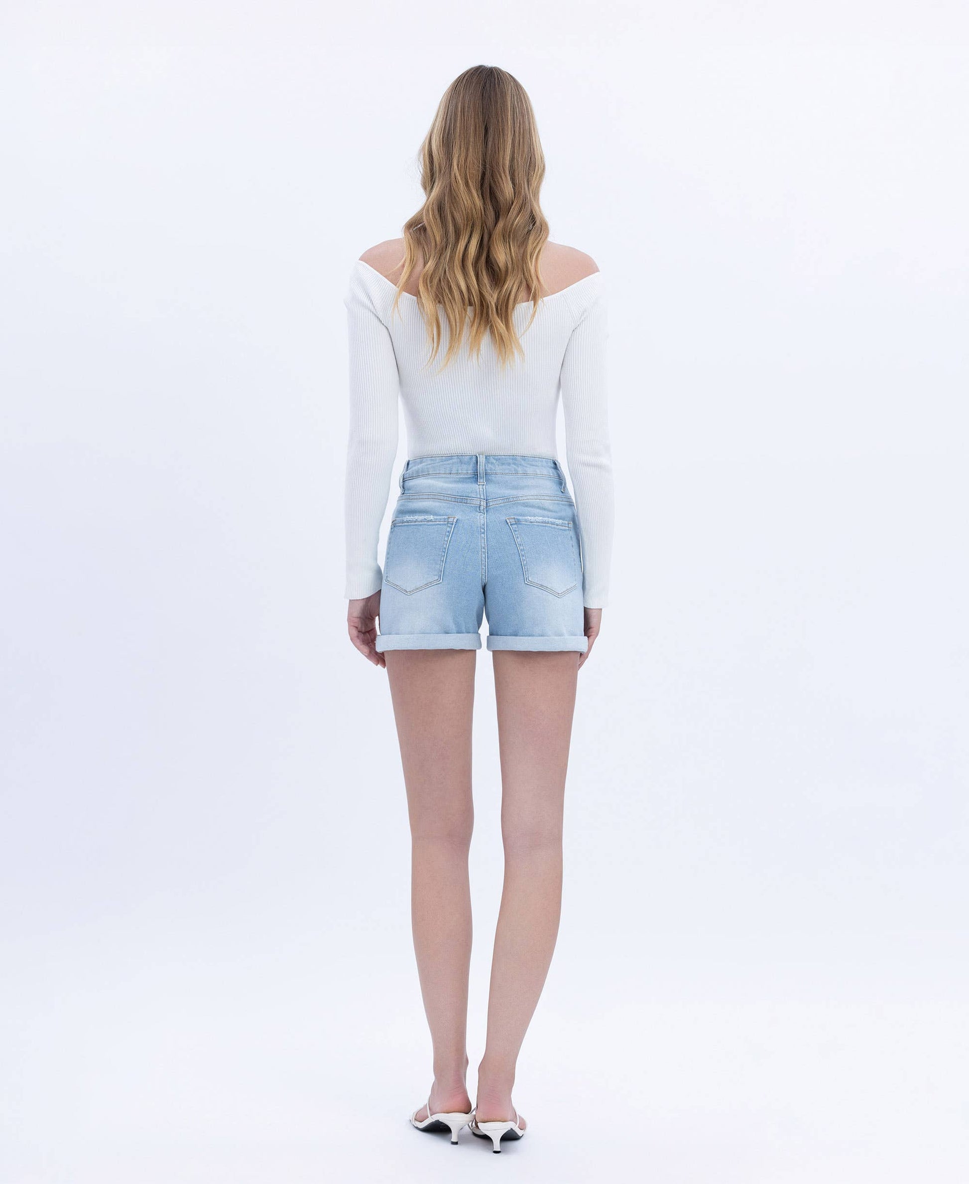 Meet your new go-to summer staple: the Super High Rise Double Cuffed Mom Shorts. Made from comfort stretch denim, these shorts combine a flattering super high-rise waist with a relaxed mom short silhouette for the perfect mix of structure and ease. The double cuffed hem adds a touch of style while keeping things casual and cool.